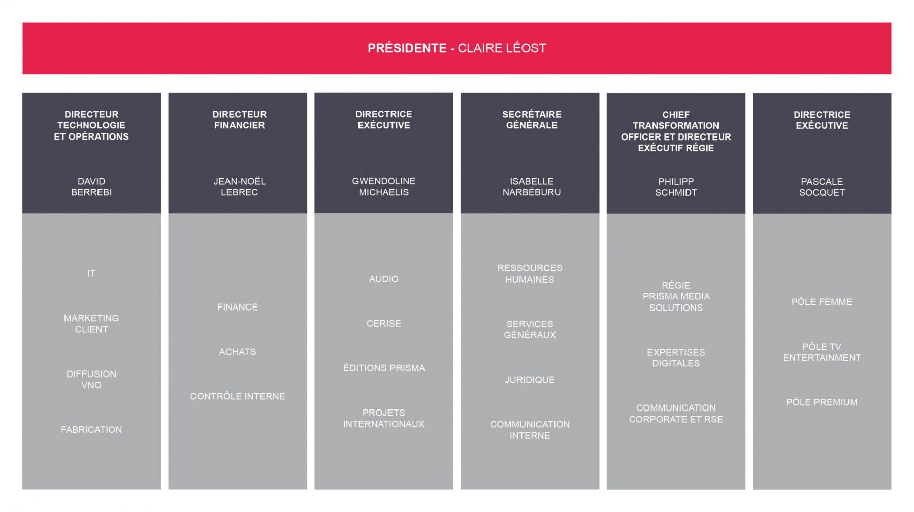 Le Comité Exécutif est en charge de la conception et de la mise en œuvre de la stratégie de Prisma Media