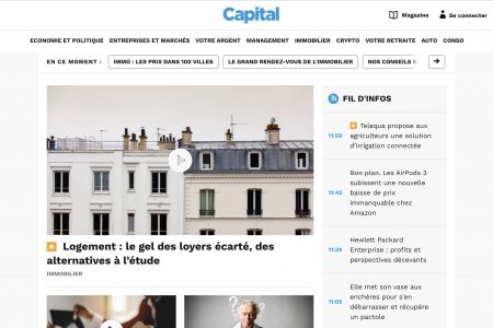Capital.fr est leader des sites d’informations et actualités financières en France*. Prolongation du magazine, Capital.fr suit l’actualité politico-économique avec un ton concret et proche de ses lecteurs. De l’information à l’action, le site donne accès à plus d’une vingtaine de services et comparateurs testés et sélectionnés par la rédaction dans les domaines du placement, de l’immobilier, des assurances, de l’emploi, de la retraite et de la consommation pour donner le pouvoir à ses lecteurs.