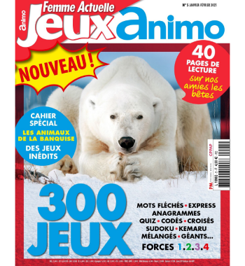 Femme Actuelle Jeux Animo paraît tous les deux mois depuis mai 2020 et est composé de 116 pages, dont les 2/3 sont des jeux et 1/3 de la lecture .