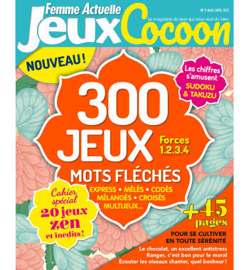 Femme Actuelle Jeux Cocoon paraît tous les 2 mois depuis juillet 2021 et est composé 116 pages dont les 2/3 seront des jeux (52 pages) et 1/3 des pages lecture (40 pages).