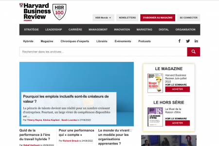 Lancé en parallèle de l’édition française de la Harvard Business Review, le site hbrfrance.fr propose des contenus gratuits avec les chroniques d’experts contributeurs et une partie payante dans laquelle l’internaute retrouve les articles et dossiers parus dans le magazine.